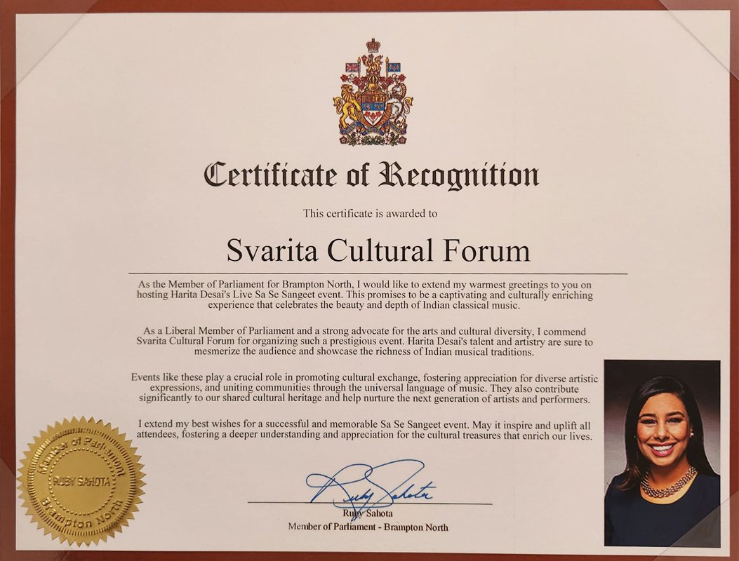 Acknowledged by MPs, MPPs, City Mayors, and Community Leaders for enriching the artistic landscape of Canada.